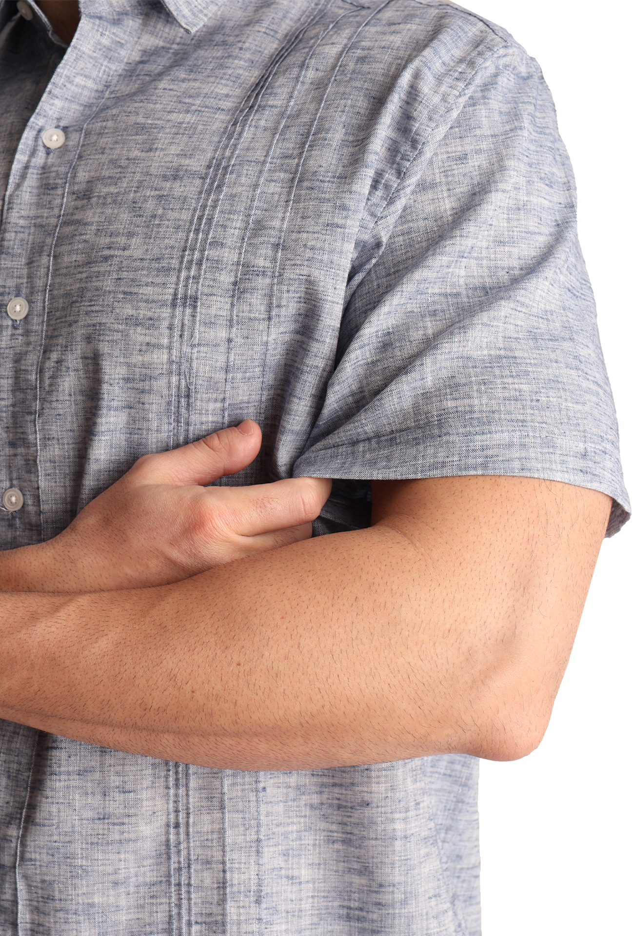 Guayabera Manga Corta Con Alforzas Look De Lino Para Caballero